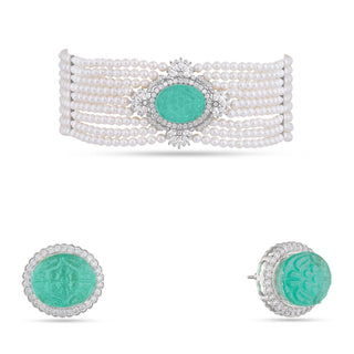 Daniya - Emerald Green doublet stone & Cubic Zirconia necklace Set