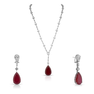 Afroza - Cubic Zirconia Emerald Green Tear Drop Necklace Set