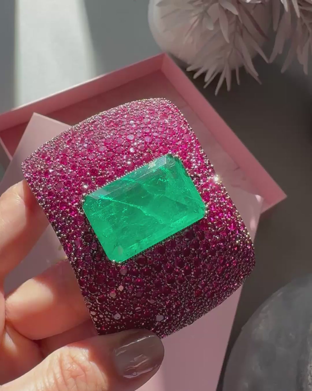 Elevate your wrist game with the Safa emerald green bracelet. The stunning green doublet stone, accented with a touch of pink, adds a unique and quirky touch to any outfit.