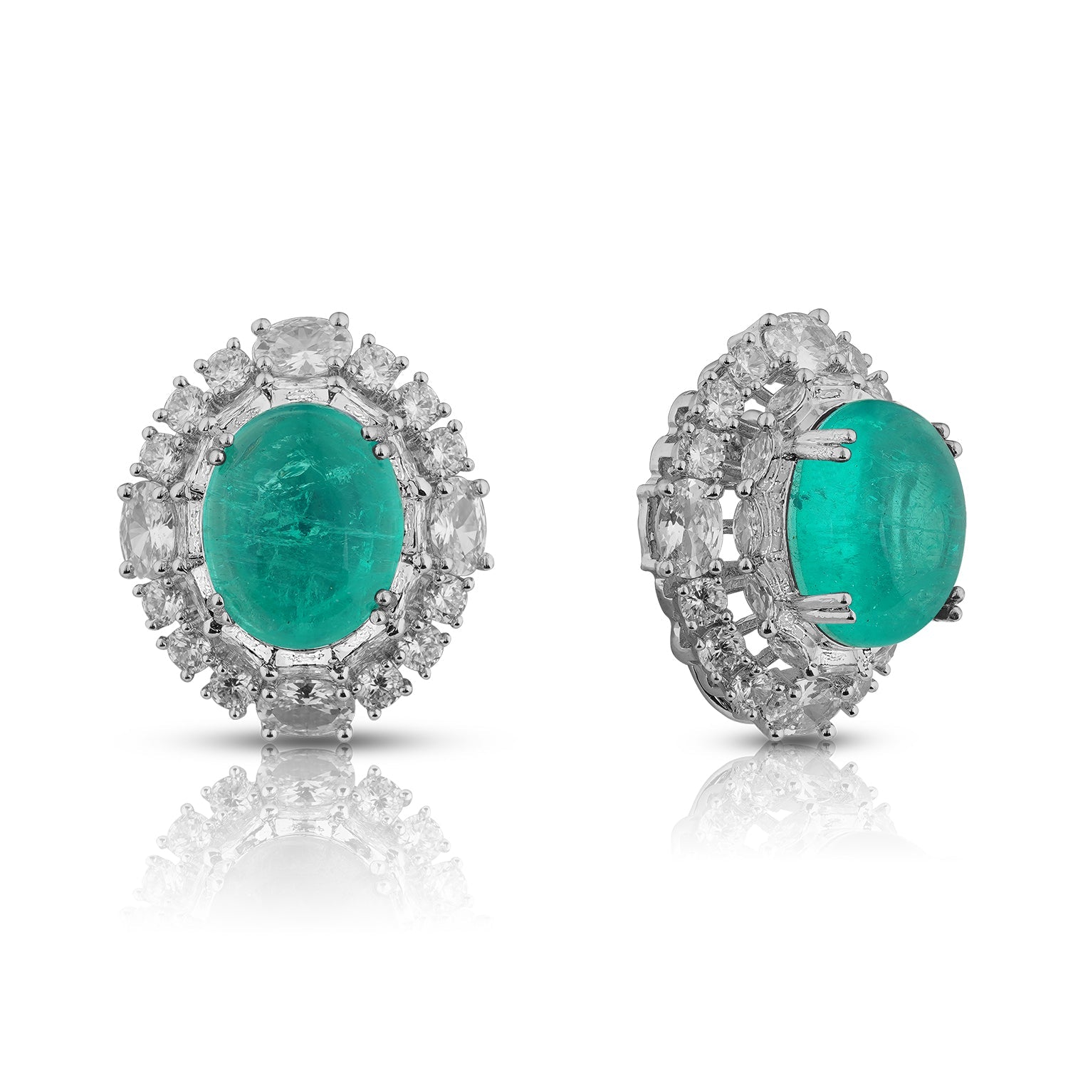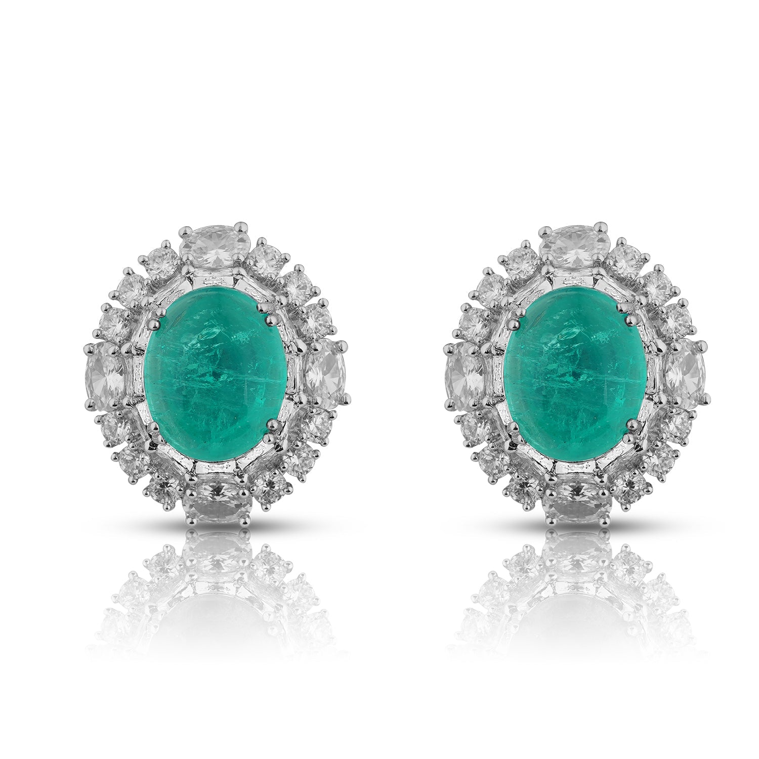 Paired with matching emerald stud earrings, framed in shimmering brilliance, this set embodies refined elegance — perfect for those who wish to make a statement of enduring grace.