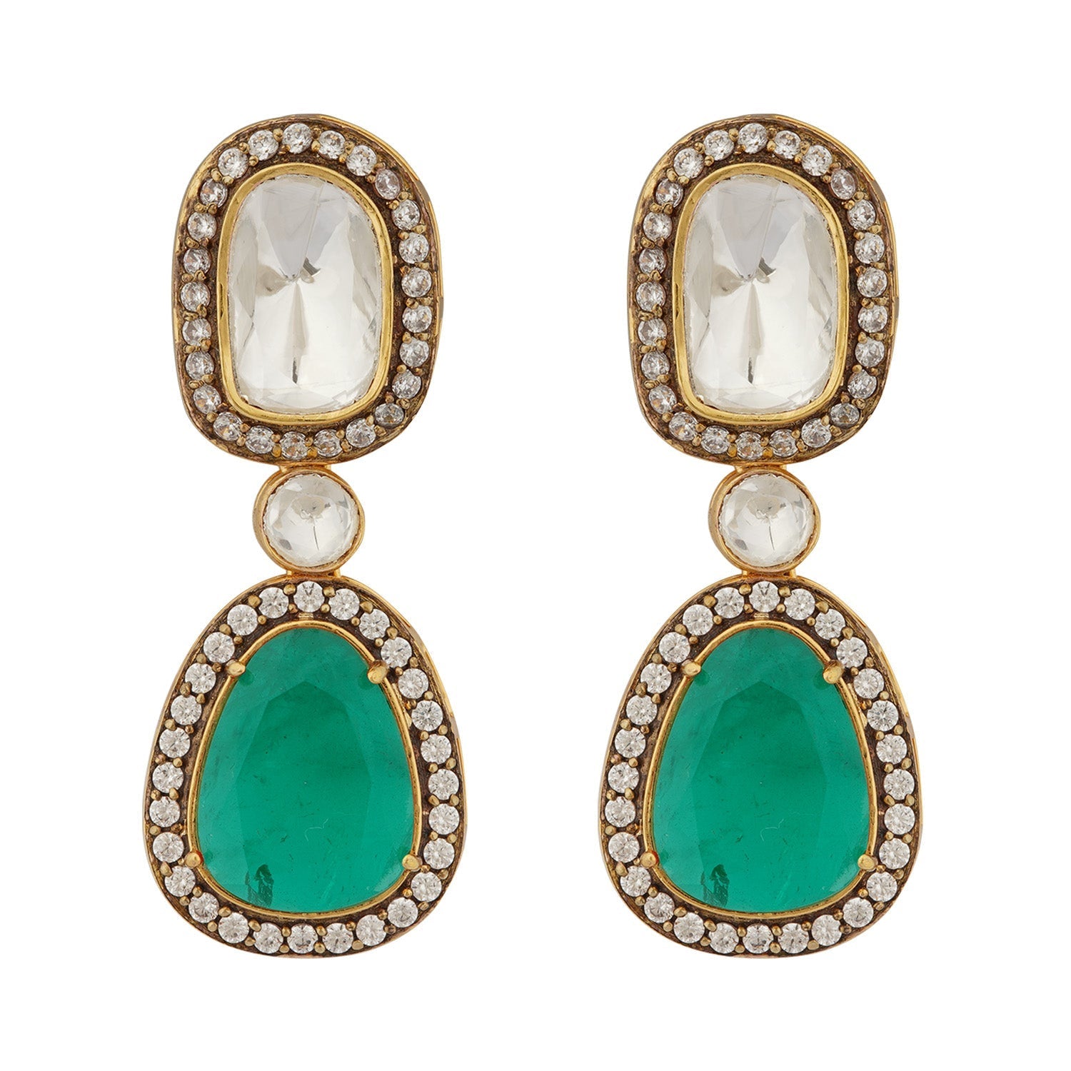 MATERIAL: Gold plated italian brass, white zircon polkis, doublet semi precious stone, pure silver foiling. Doublet stones often have natural cracks and imperfections (inclusions), which are typical characteristics and not considered defects.