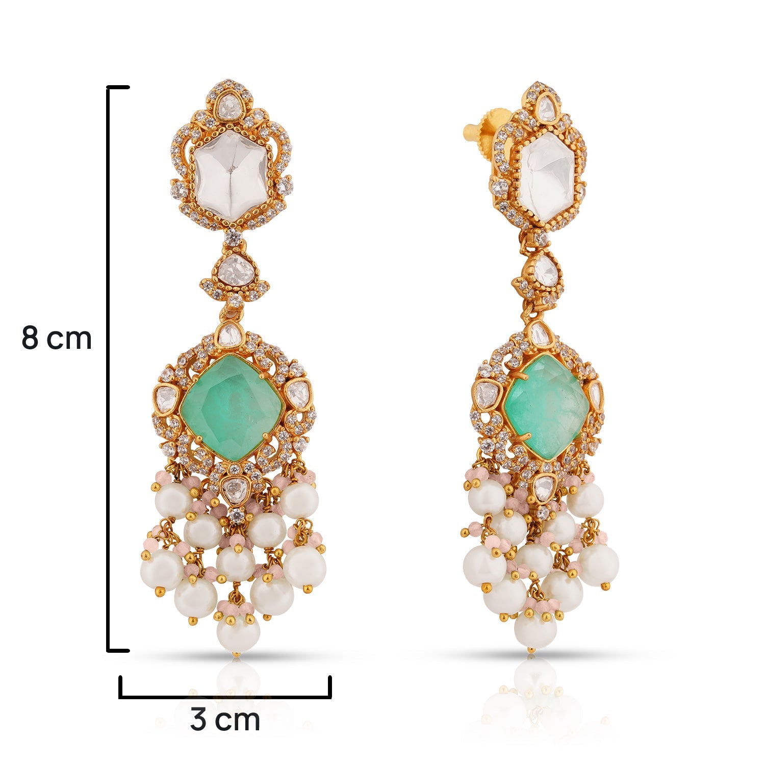 MATERIAL: Gold plated silver and brass mix metal, doublet semi precious stone, white zircon polkis, imitation pearls. Doublet stones often have natural cracks and imperfections (inclusions), which are typical characteristics and not considered defects.
