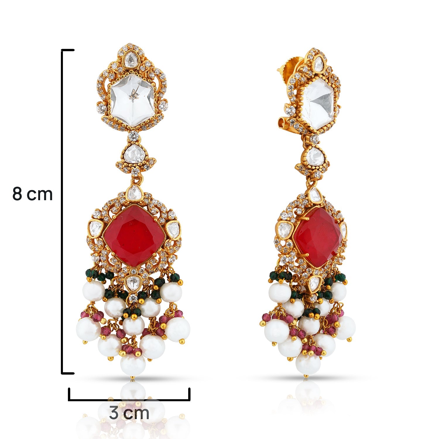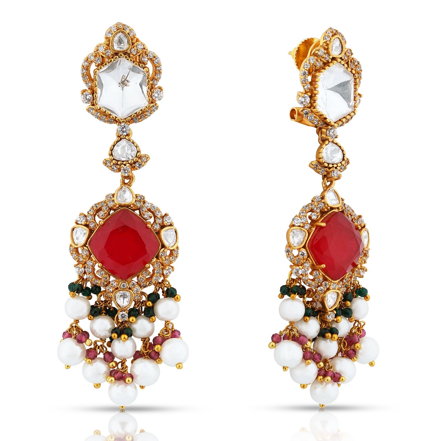 MATERIAL: Gold plated silver and brass mix metal, doublet semi precious stone, white zircon polkis, imitation pearls. Doublet stones often have natural cracks and imperfections (inclusions), which are typical characteristics and not considered defects.