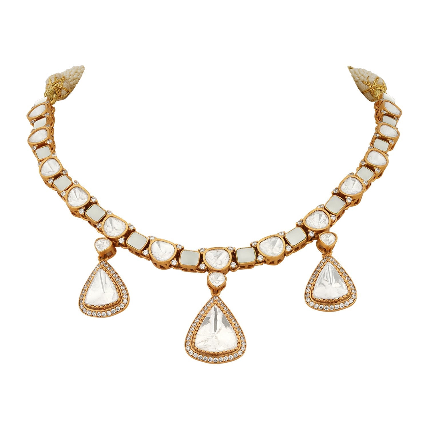 The Samaira Necklace Set exudes elegance with its stunning design and intricate details. Featuring white accents and shimmering drops, this set is perfect for weddings, festive celebrations, or glamorous evenings.