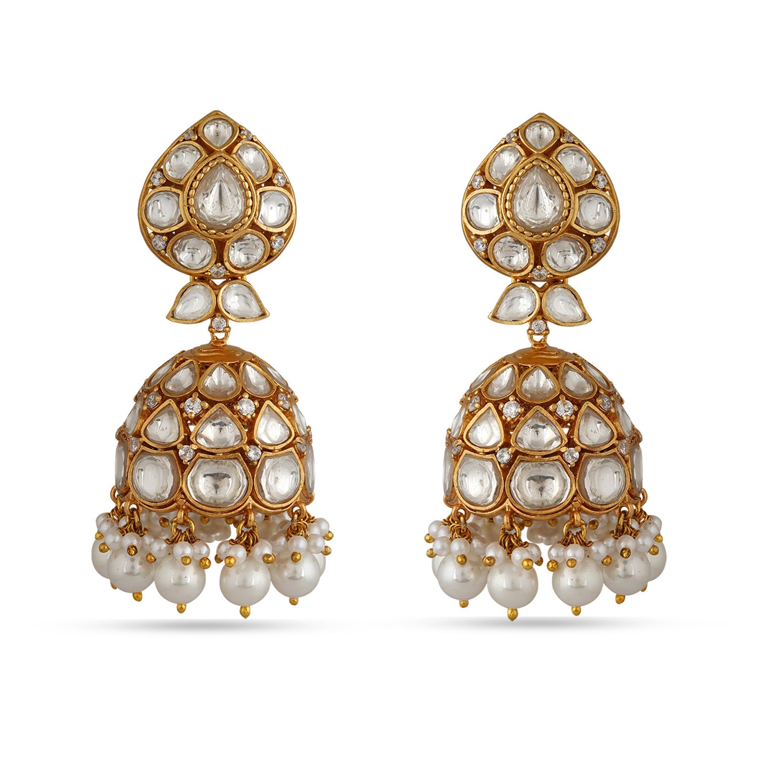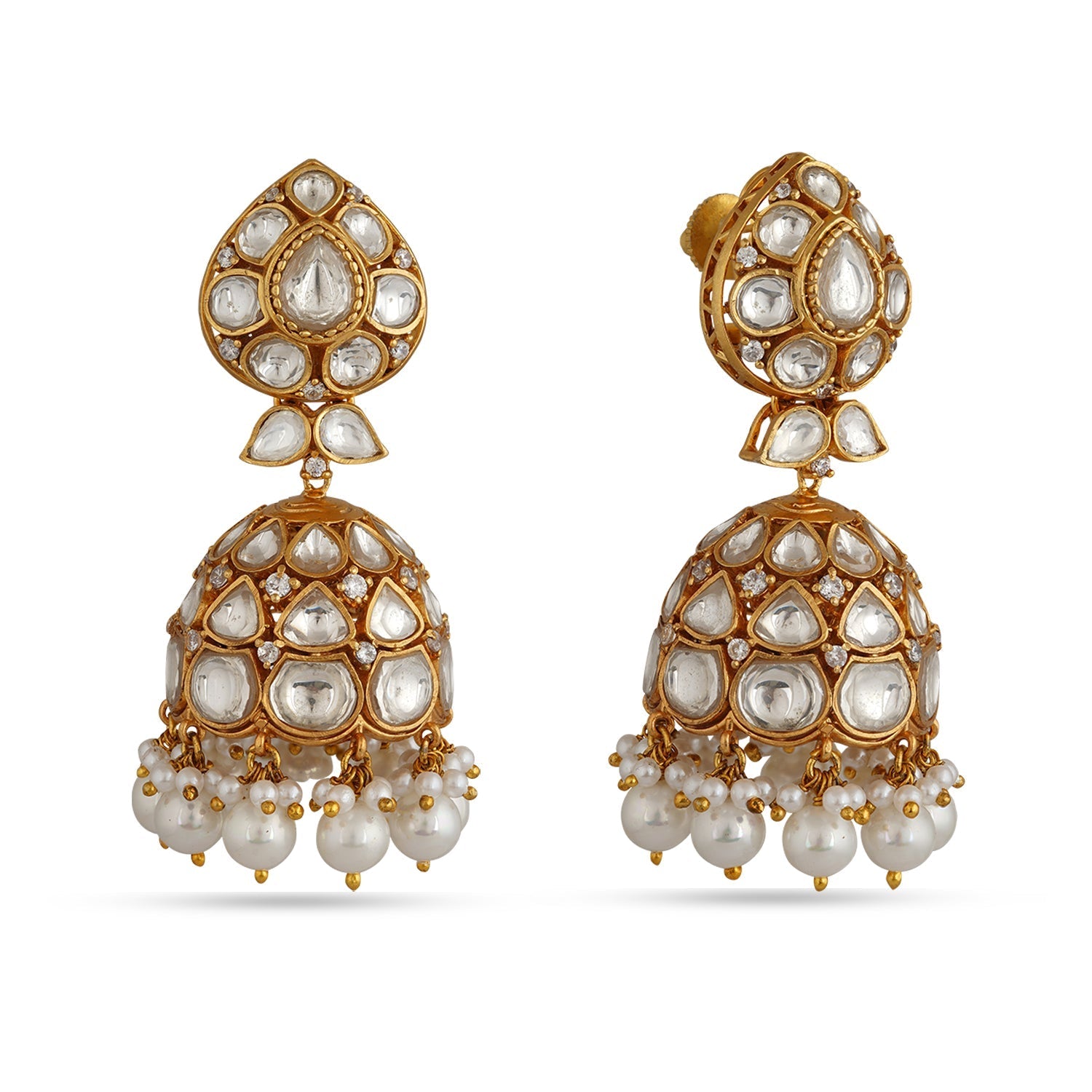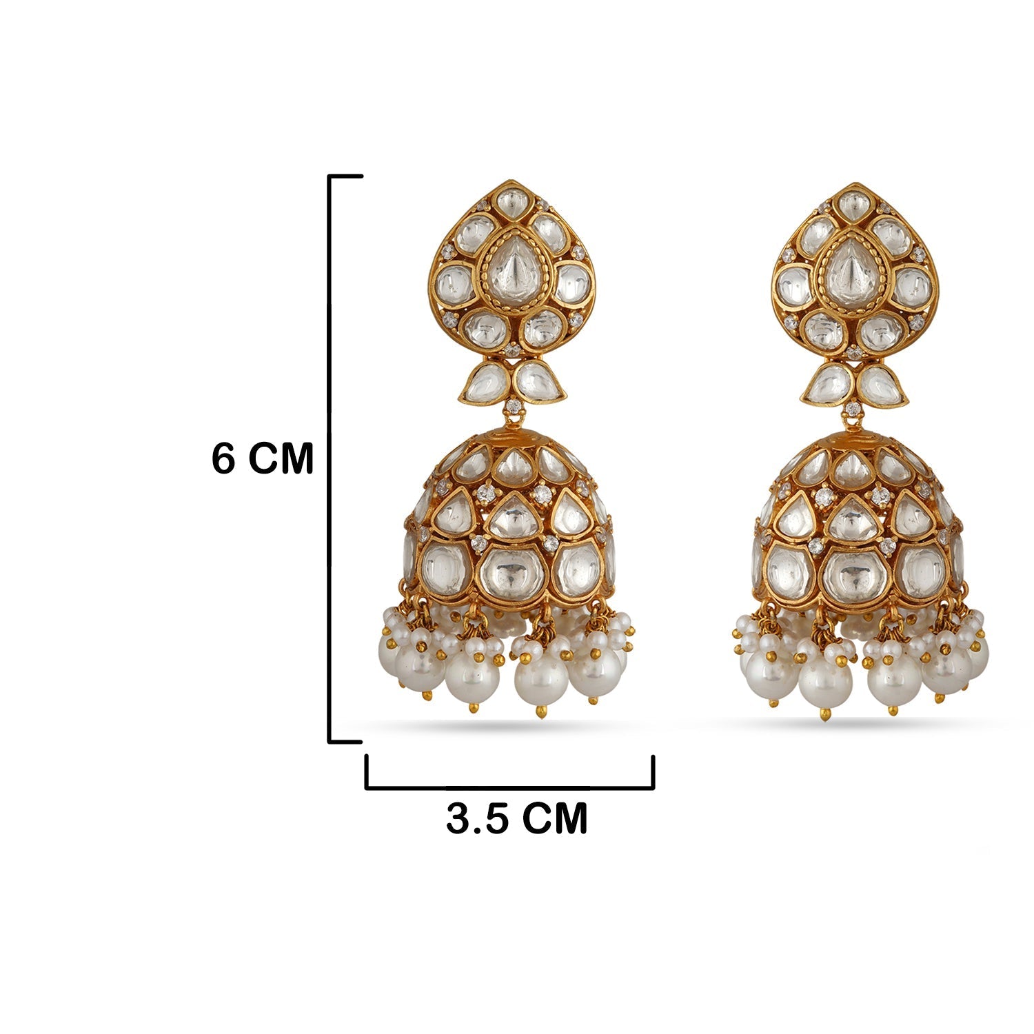 Add some sparkle and glamour to your ensemble with our Mahvish - Kundan Jhumki earrings! These gold plated earrings feature intricate kundan and bead drops, perfect for any occasion.