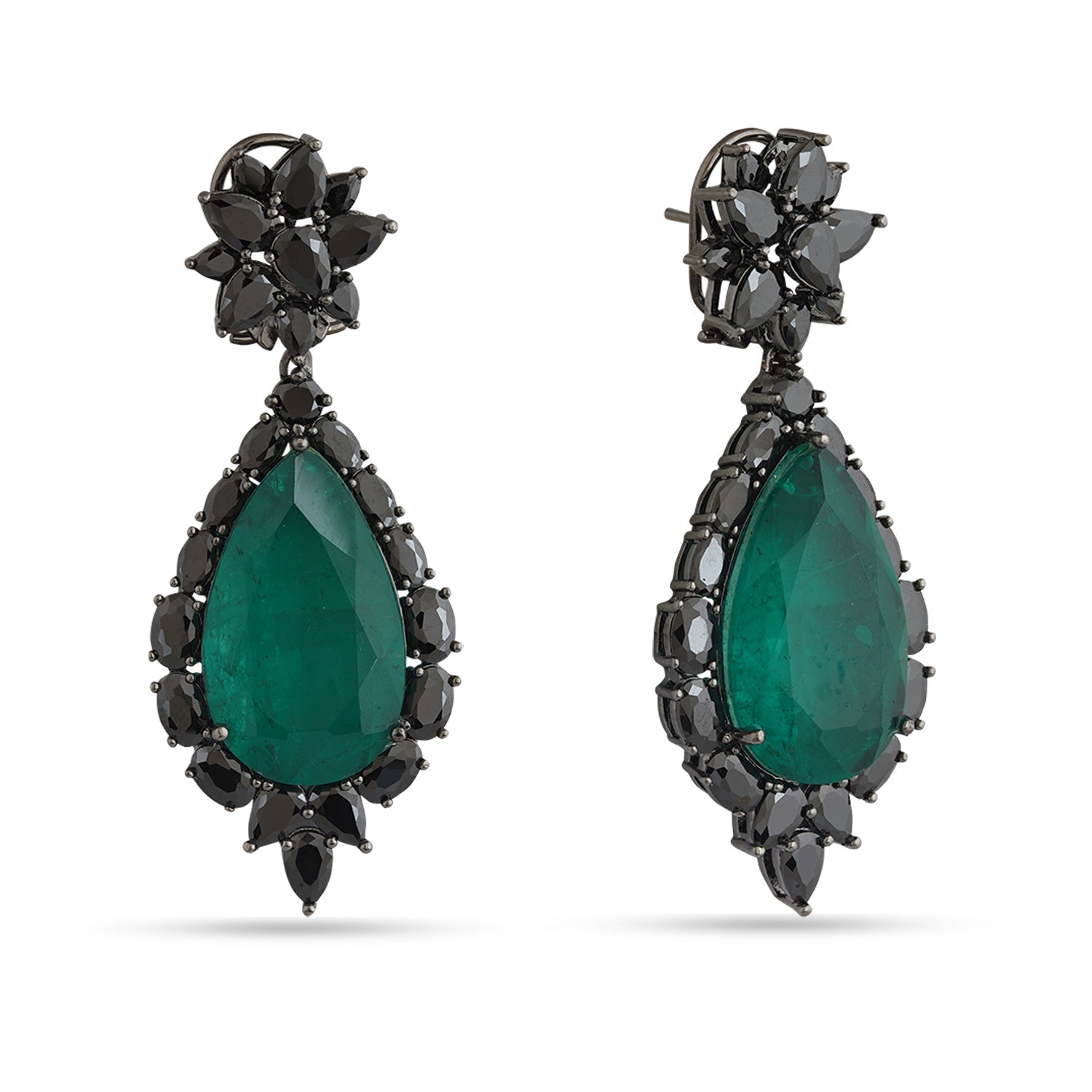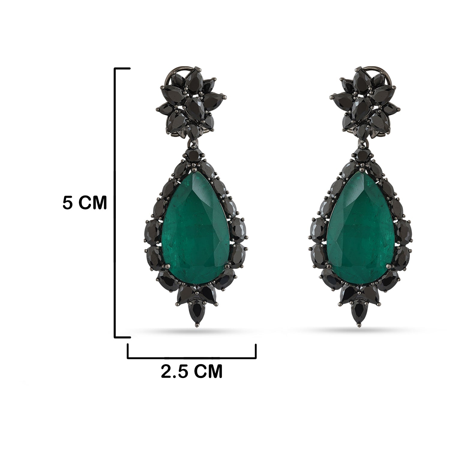 Add a touch of earthy elegance to your look with these Mevish dangler earrings featuring a vibrant green stone design. Elevate any outfit with this unique accessory.