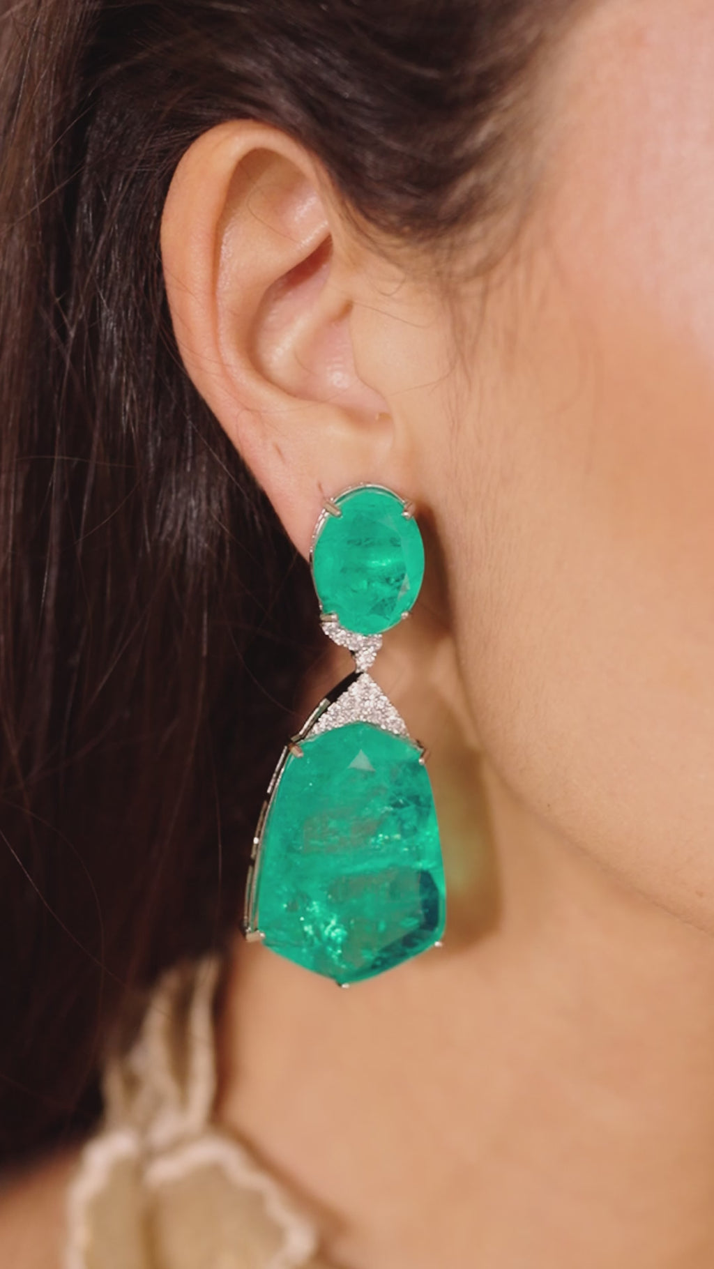 The Ava Dangle Earrings in aqua are fresh, bold, and timeless. An oval-cut aqua stone leads gracefully into a larger trapezoid drop, with a subtle shimmer of CZ stones in between. The fluid silhouette and luminous color capture the essence of elegance, while the faceted stones sparkle beautifully with every turn.