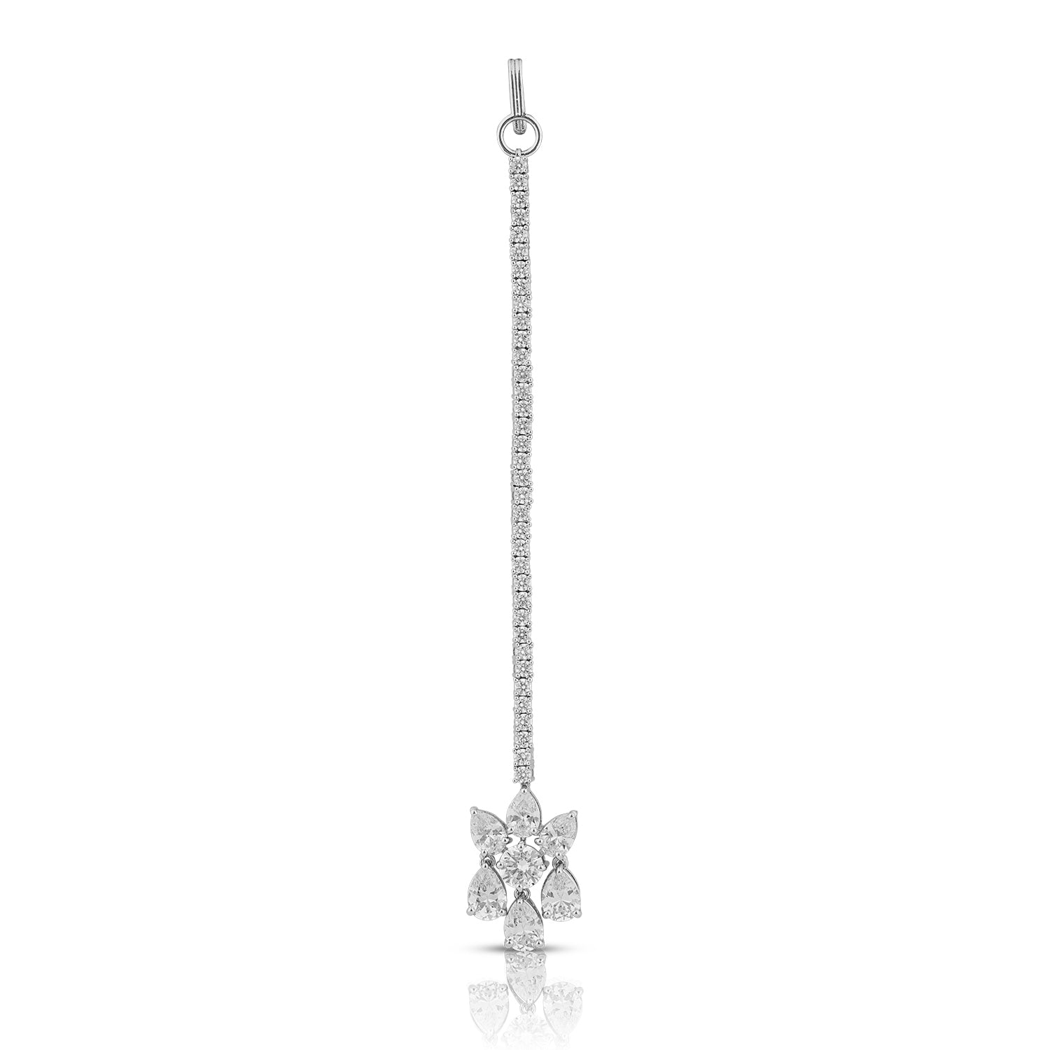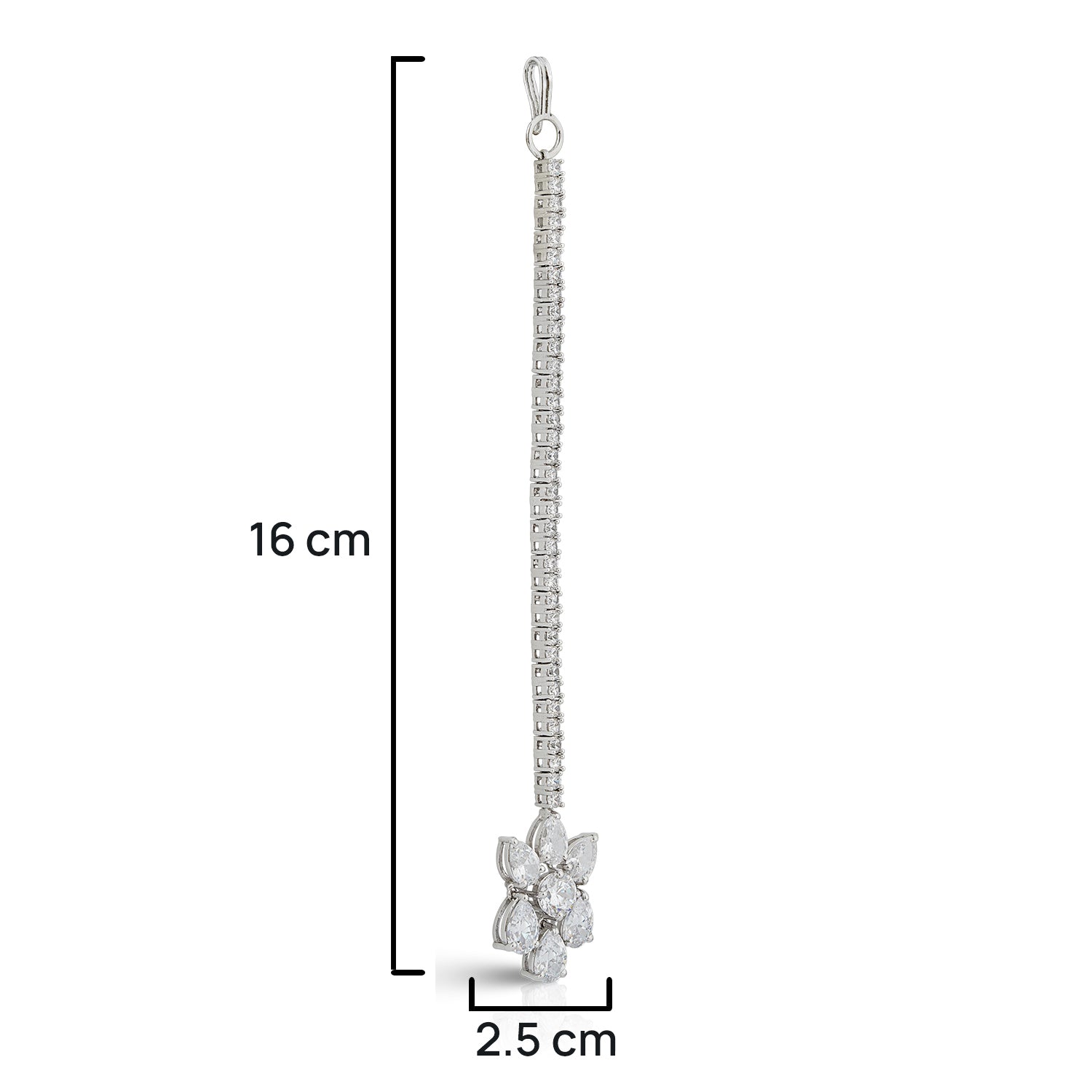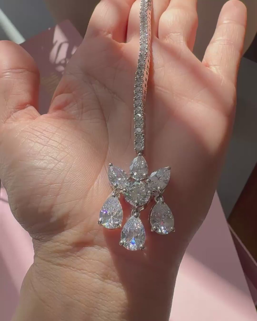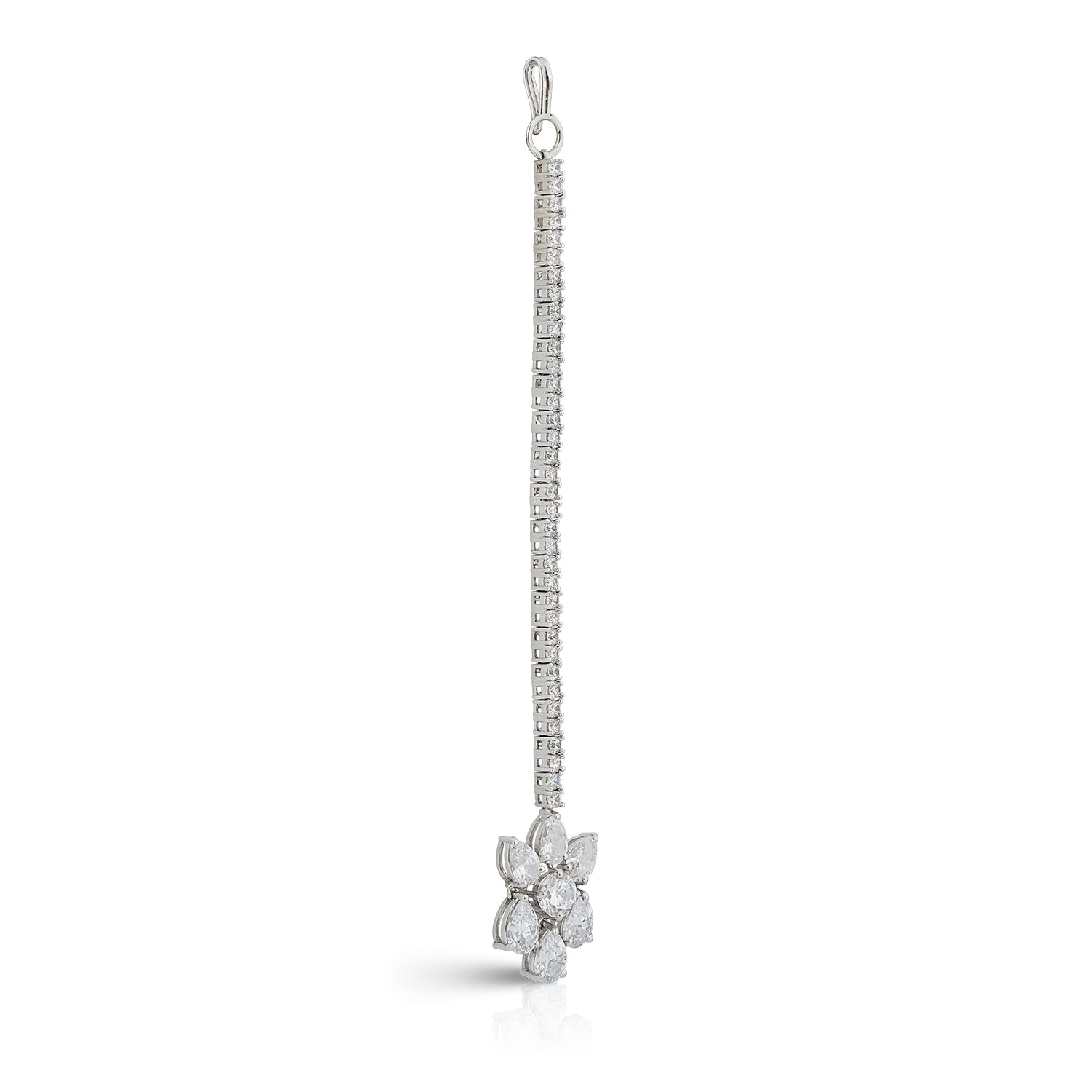The Noa Maang Tikka is a whisper of radiance woven into tradition. A slender cascade of CZ stones flows gently into a floral cluster, where pear and marquise cuts bloom like petals kissed by light.