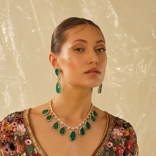 Daniya - Emerald Green doublet stone & Cubic Zirconia necklace Set
