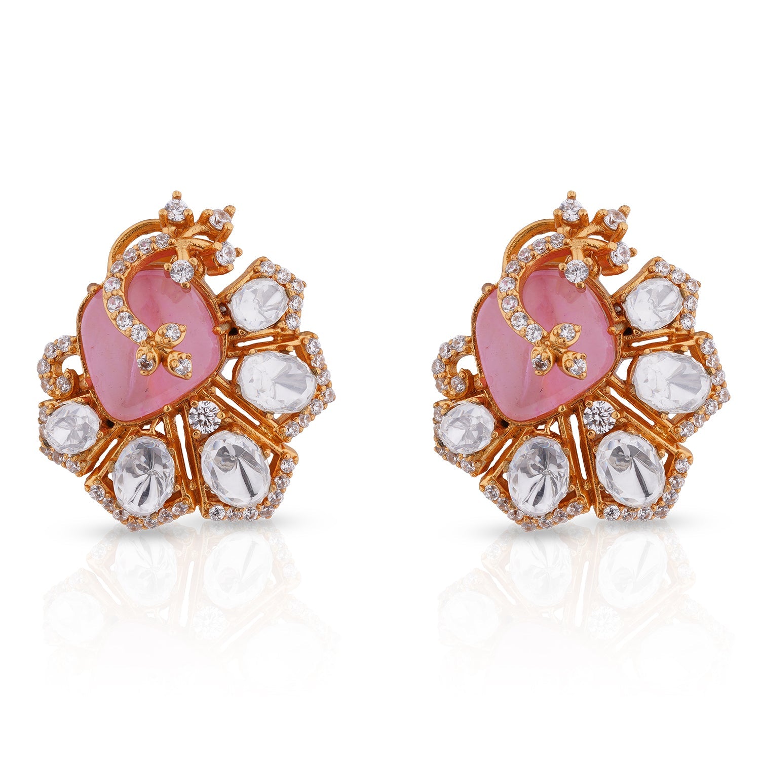 MATERIAL: Gold plated brass metal, Pink Doublet stones, AAA CZ. Doublet stones often have natural cracks and imperfections, which are typical characteristics and not considered defects.