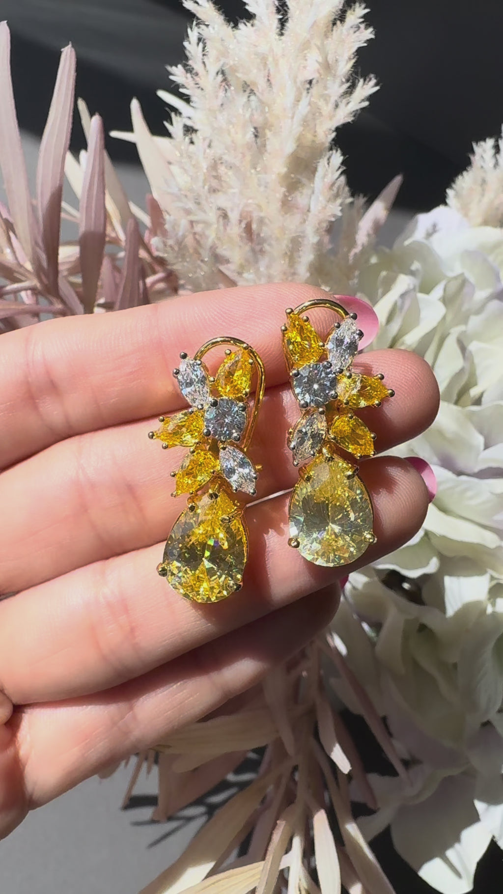 Add a pop of colour to your look with Bea yellow CZ earrings. These gold plated stunners are sure to turn heads.