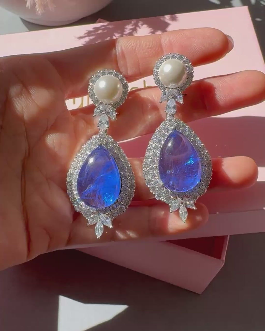 Elevate your look with Anaum - bold dangler earrings featuring pearl and an emerald green centre surrounded by an american diamond border. Rise to any occasion and show off your daring style!