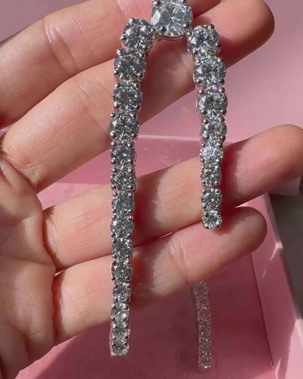 These gorgeous earrings feature round brilliant cut cubic zirconia arranged in a stunning waterfall style.