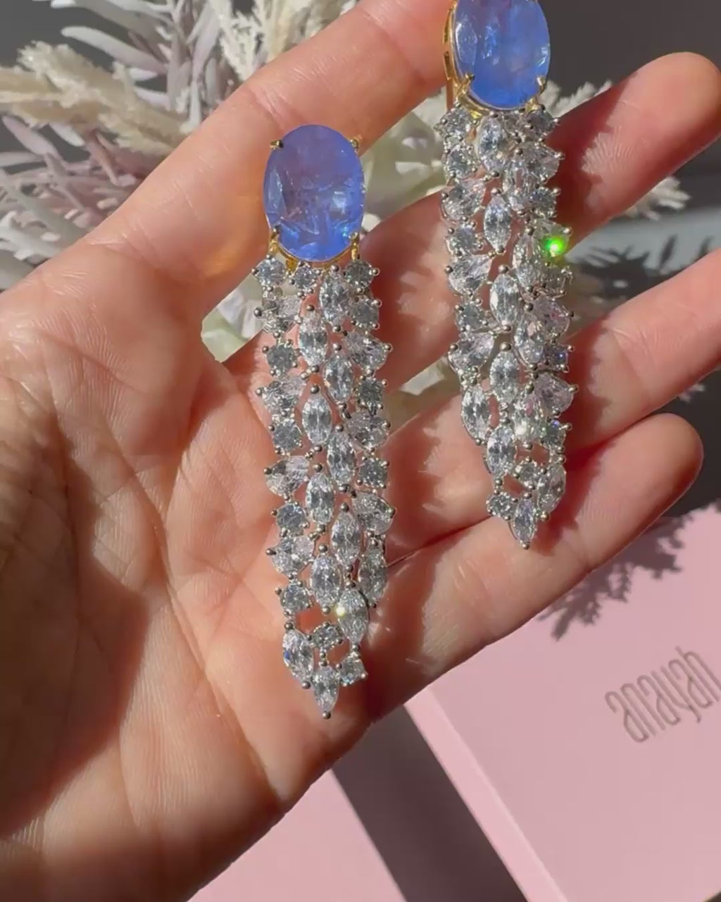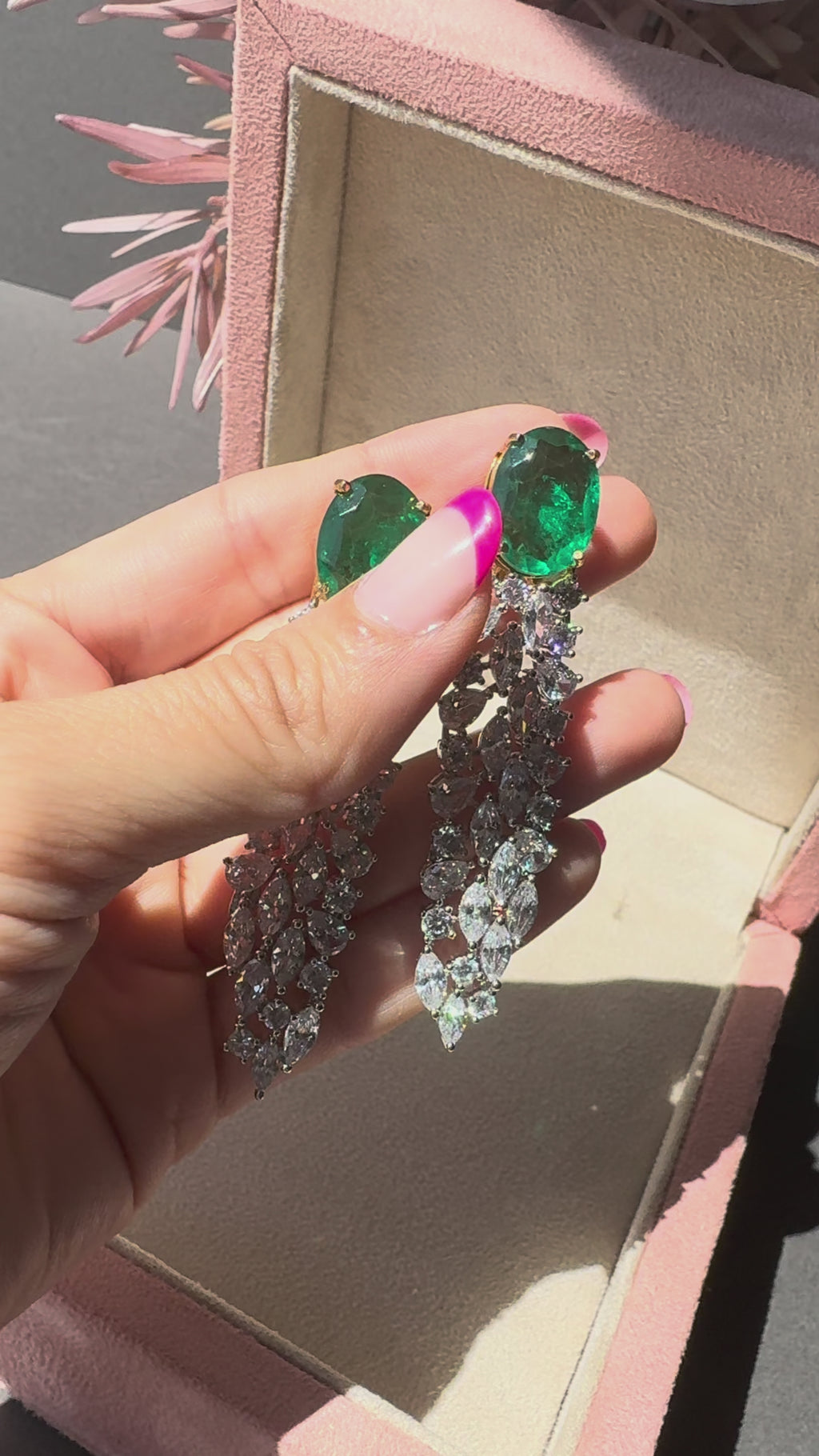 Luscious emerald green meets sparkling diamonds in our Irsa long earrings. These earrings are perfect for adding a touch of elegance and playfulness to any outfit. With the stunning centre stone and shining cubic zirconia, you'll be sure to turn heads and make a statement.