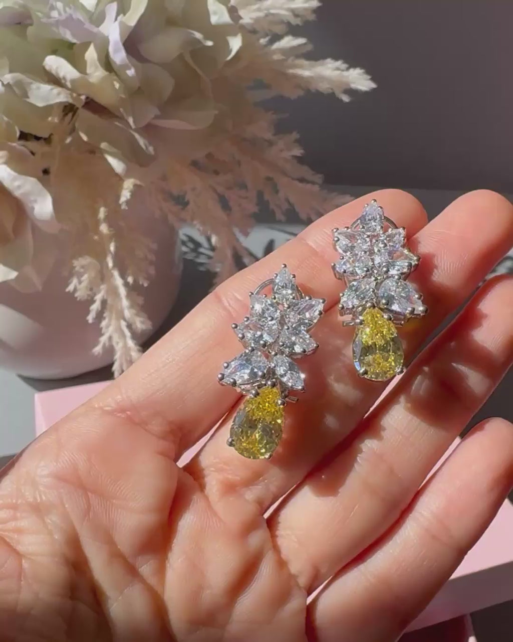 MATERIAL: Rhodium plated metal, Yellow CZ, AAA CZ.