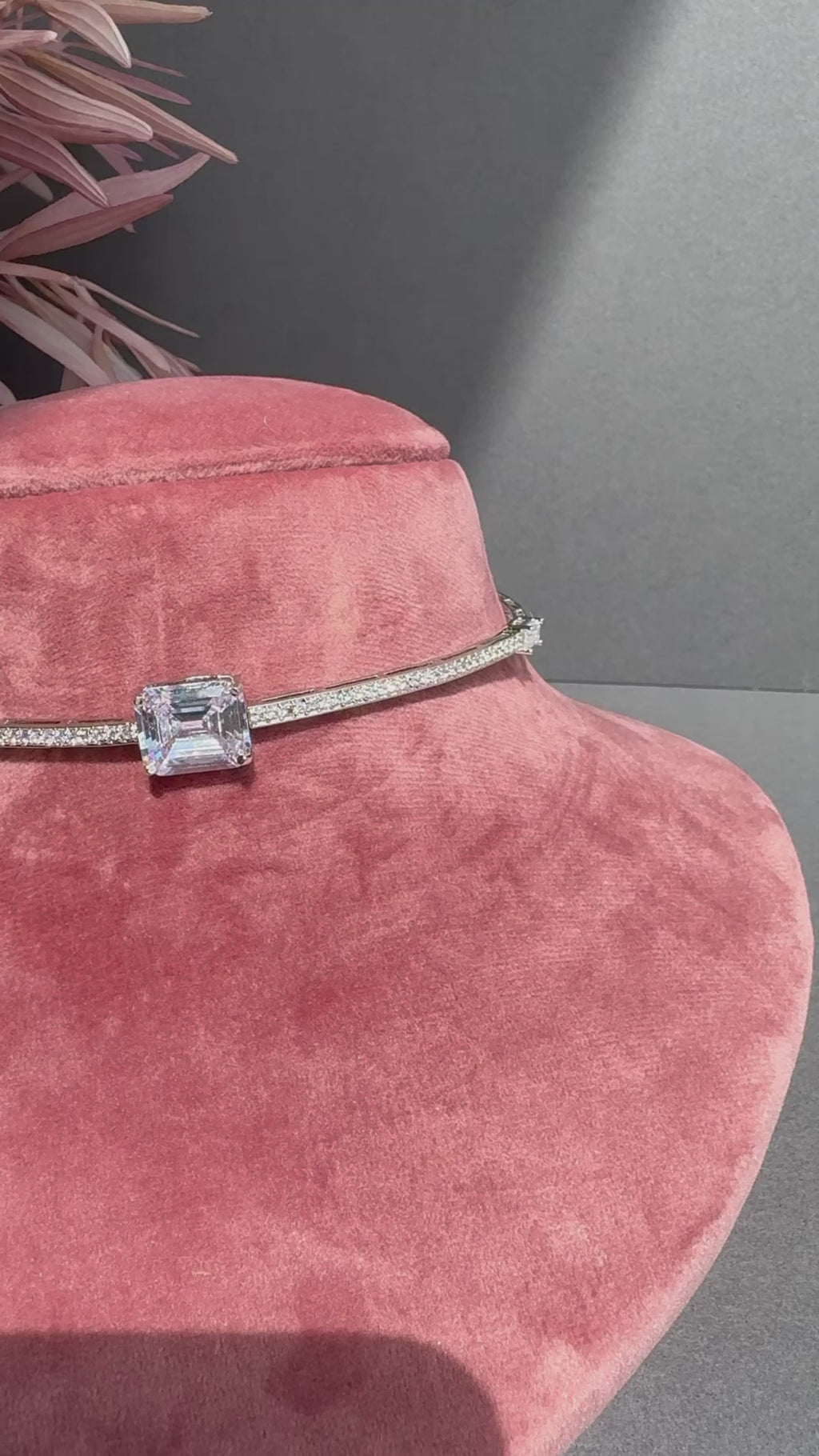Get ready to turn heads with this fabulous choker adorned with a bold ruby red cubic zirconia center piece, paired perfectly with stunning red CZ stud earrings.