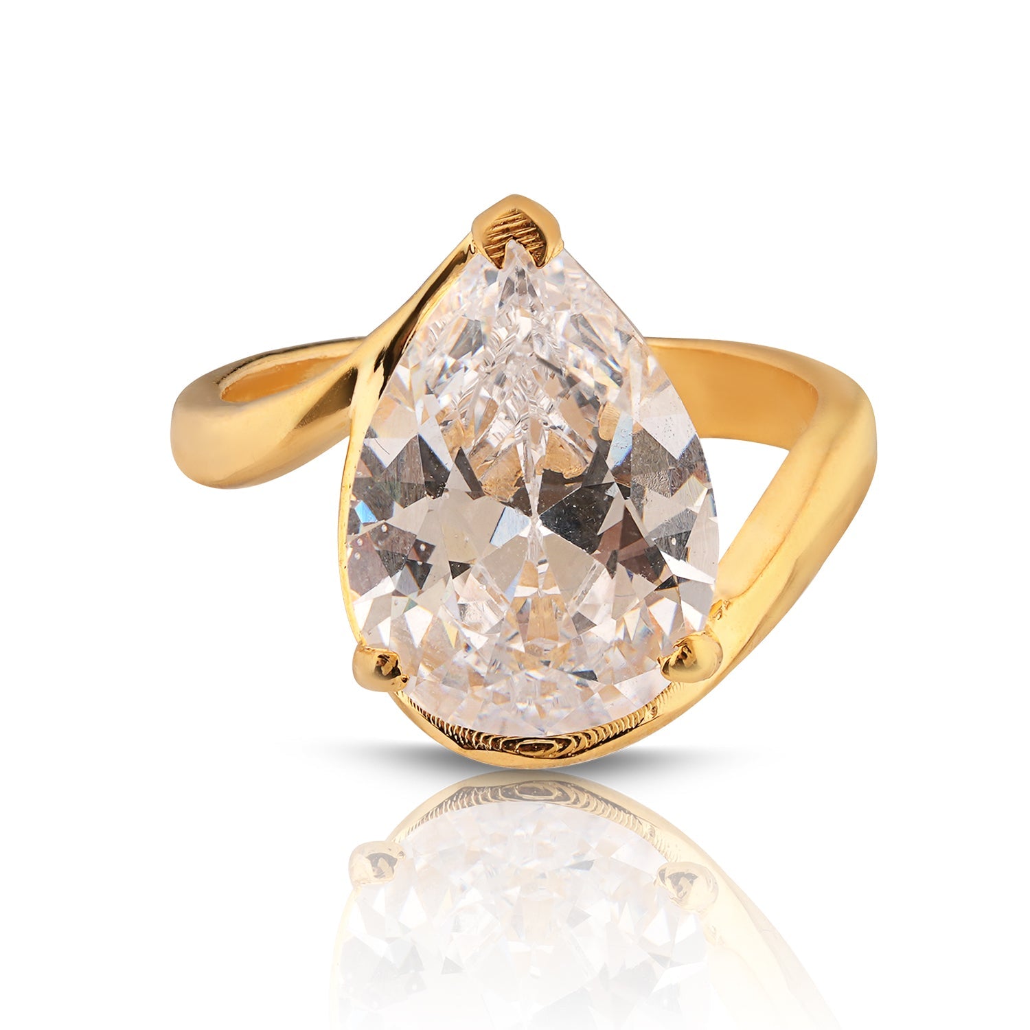 AA striking pear-cut crystal ring designed to make an impact. Set in a sleek wrap-style band, the oversized teardrop stone catches the light beautifully for maximum brilliance. A timeless statement ring perfect for special occasions or elevating your evening look.